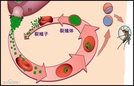由此,大量疟原虫从红细胞中释放出来,使代谢产物进入血液循环中,引起以寒战、高热及大汗为特征的表现。疟原虫在红细胞内发育有一定的周期,待发育成熟后可再次从红细胞中释放出来,引起又一次发作,如此周而复始。