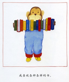 当我和女儿一同分享这本《我喜欢书》的时候,她很肯定地认为,这是为她量身订做的书。她站在卧室兼书房里,指点着四周的书,很得意地说:“我喜欢各种各样的书,好笑的书,搞怪的书,胖的书,瘦的书,高的书,矮的书,讲恐龙的书,狗的书,猪的书……真的,我非常喜欢书!”