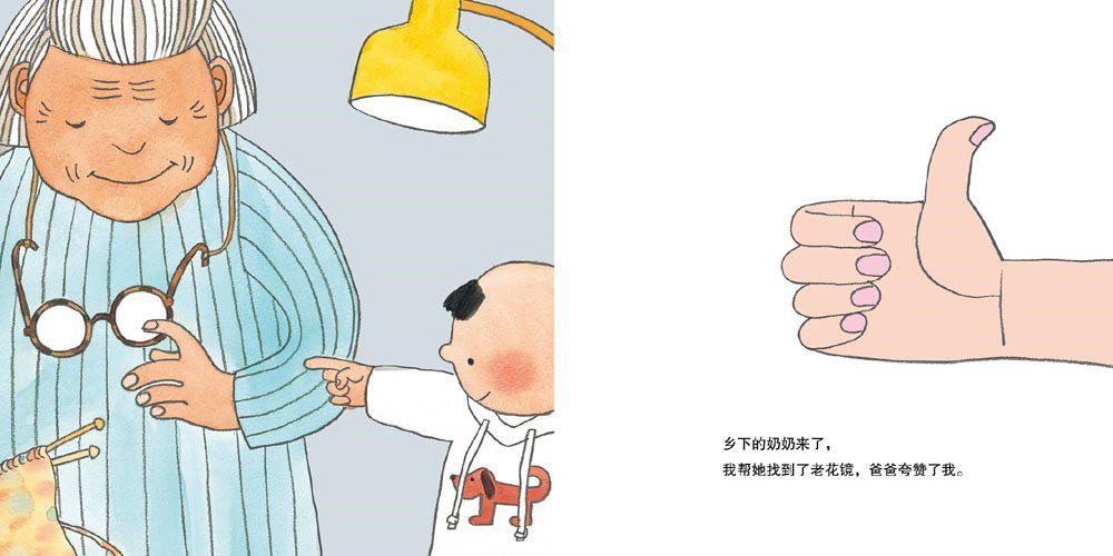因为现在强调的图画书中图画的重大作用,也就出现这样的情形:图画书未必有着“完整”的故事,也未必所有的图画都在叙事,也未必图画及其文字要推动故事向前发展。比如,《会说话的手》中,哪里有故事呢?