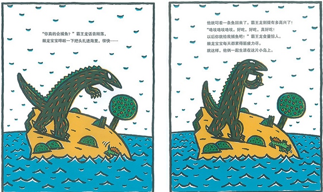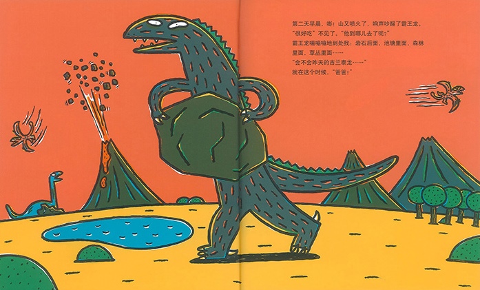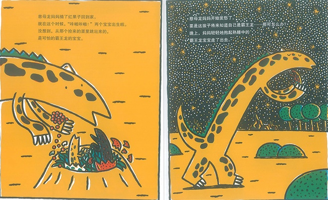 宫西达也的绘本风格活泼鲜明,塑造的狼、猪和恐龙等角色,用流行词“萌萌哒”来形容,那是一个恰如其分啊。故事也诙谐搞笑,表现的却是亲子、友情等各种不同的爱,能“触动到自己心中最柔软的部分”。这和他拥有四个孩子,以及常在日本各地举办亲子讲座与说故事活动,更接地气,更能贴近孩子的心。因此,他的创作能被从小孩到成年人都能轻松阅读并且乐在其中。