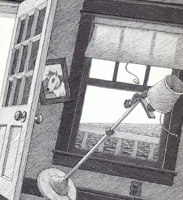 从内容看,另外一个让我儿子觉得有趣的地方,就是最后玛格丽特对班班说起她在看地理书时也做了同样的梦,而且在狮身人面像那里看到了一个人。读到这里的时候,我儿子恍然大悟地喊起来,“那个小房子是玛格丽特的家!”是的,在埃及狮身人面像那里,画面里与班班的视角相对的窗户里那个小人儿正是玛格丽特。孩子们对这样的一个设计当然有留意。