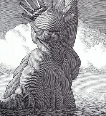 因为有这样的发现,儿子不理睬紧接着而来的桌子、花瓶、台灯的大倾斜,作者精心设计的让我们心理过渡的大跨页,他迫不及待要翻篇了,然后就从自由女神开始了我们的世界地标建筑之旅。