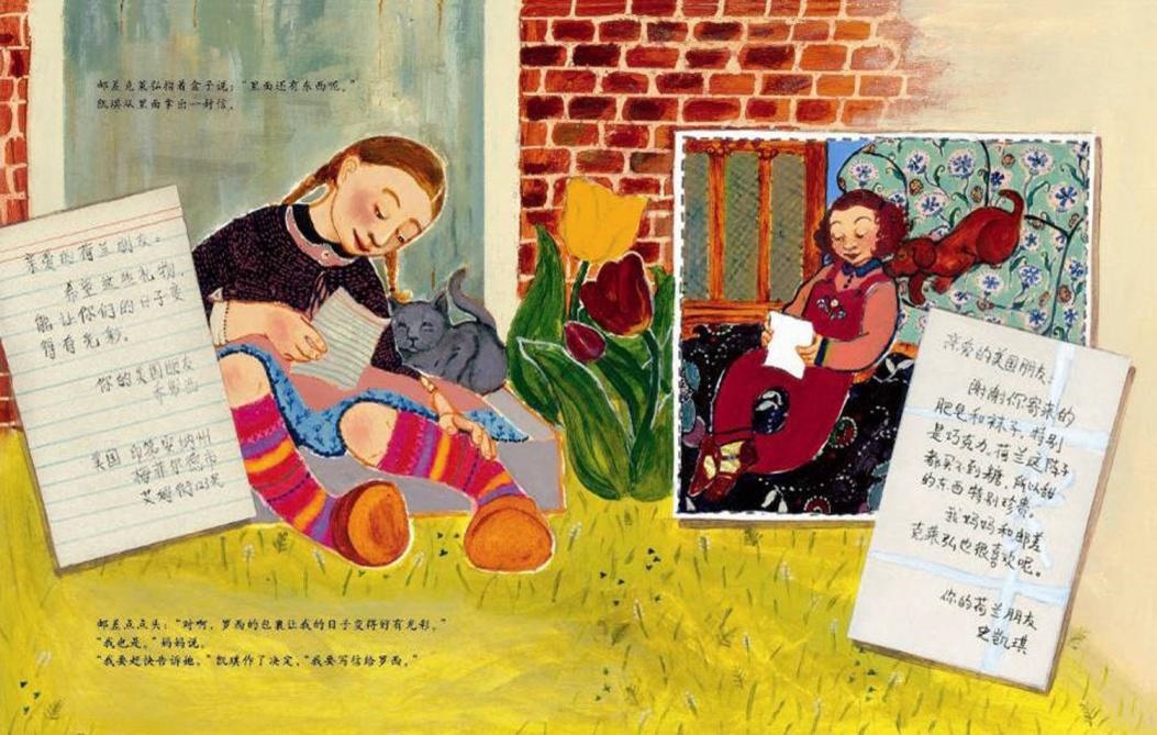 在两人中间传情达意的除了包裹,当然也有信啦。两个素未平生的异国女孩用自己的信沟通了两个世界,传递了满满的关爱。