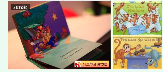 4、熟悉的歌曲导入。为了练耳朵和制造语境,我们是提前在家里、在车里播放英语童谣。这些经典的英语歌曲很多都有相应的童书出版。