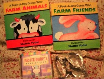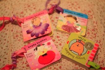(13)“buggy buddies”是一套带塑料手环的硬板翻翻书。小仙女系列特别适合给女孩子。妹妹经常手上套着2、3本,既可以做玩具,也可以随时要我们给她讲读。
