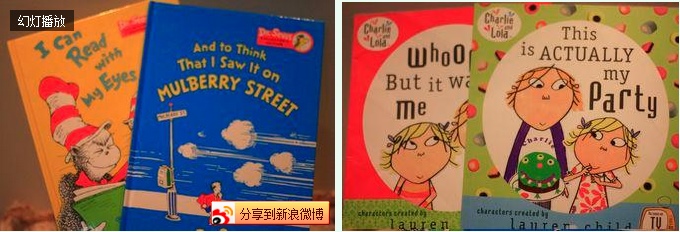 3、熟悉的母语童书导入。很多经典童书都有了简体中文版。经过亲子阅读,我们也了解了孩子们喜欢的书了。我们会专门寻找一部分这样的原版书来,效果也非常好。比如,查理和劳拉系列,《Guess how much I love you》、苏斯博士系列、spot dog系列等。