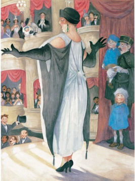 另外,《我们的妈妈在哪里》仅仅是简单概括故事梗概的一个问句式的题目吗?当然不是,翻开歌剧院的页面,除了躲在幕后观察的姐弟俩和警察,另一位主角也在这里出现,看到二楼的观众席吗?看到那个俯身寻找的身影吗?身着灰色套装、头戴装饰紫色花朵的帽子、怀中抱着的白色毯子里露出我们熟悉的蓝色小帽子!哈哈,接下来,在商店的窗外、马戏团演出的观众人群中、教室的窗外,妈妈的身影如影随形,一闪而过。