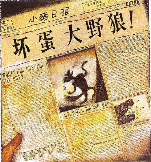 变化同一个故事讲述者的角度和立场,这就给了孩子们一个思维的小小挑战。有趣的是,不同的版本都通过传媒得以流传,与上图不同,图10是刊登在《小猪日报》上的以狼吃了三只小猪为内容的报道----因为是小猪们的报纸的缘故吗?