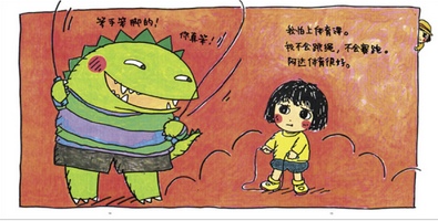小兜对待这本书的反应非常政治正确:“不能欺负别人。如果被别人欺负了,就告诉老师。”我随口问她:“你们班上有没有专门欺负别人的男生?”她回答:“没有专门欺负的?”我又追着问:“那就是说,有不专门欺负的啰?”小兜说也没有。